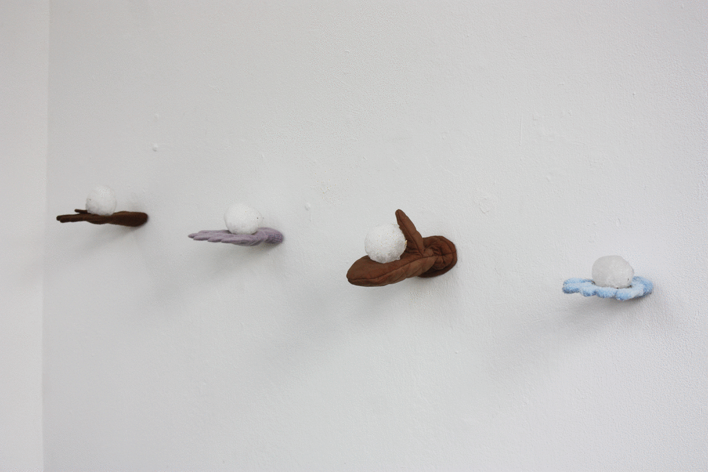 Sobald die Schneebälle auf den Handschuhen geschmolzen sind, werden darauf vier neue platziert. Insgesamt wurden 50 Schneebälle mit öffentlichen Verkehrsmitteln von Lechaschau (Tirol) nach Halle Saale transportiert. Befeuchtet durch das Schmelzwasser breitet sich das Moos über den Ausstellungszeitraum auf dem Boden der Galerie aus.
